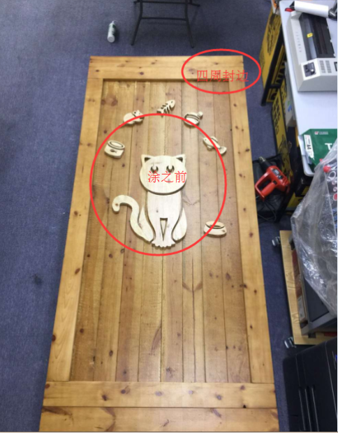 中間晾曬的幾塊板材,是拿來做門周邊封邊解決的,這幾塊板材最佳選色彩與門板一致的,為了節(jié)約木料,因此在采辦的時候就要計算好大約有多少塊的板材。